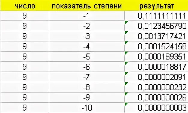 Таблица степеней 10 класс.