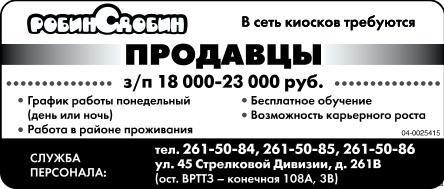 Объявление требуется на работу.