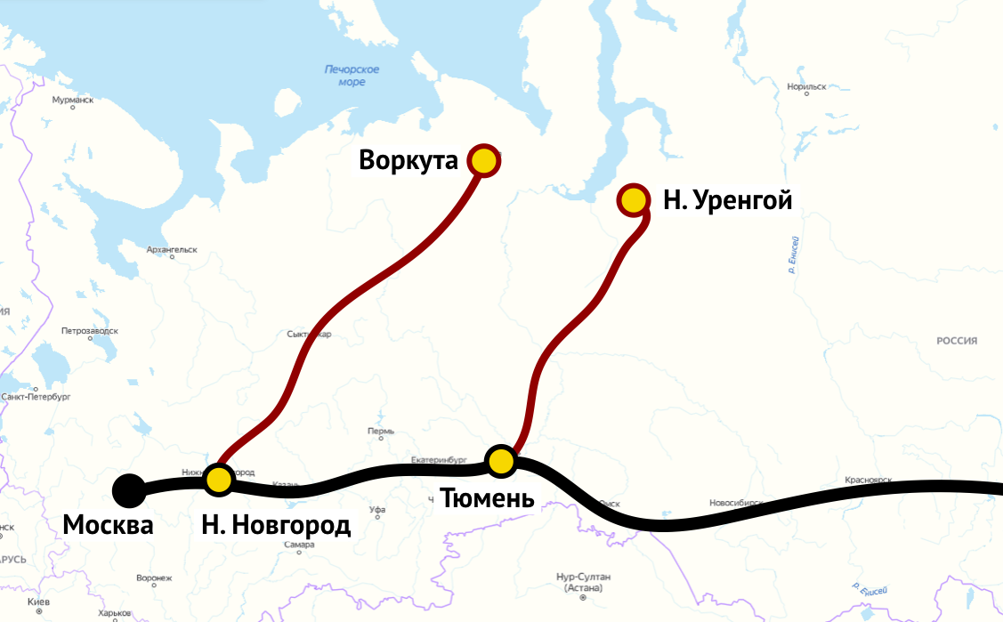 Железная дорога Северный широтный ход на карте.