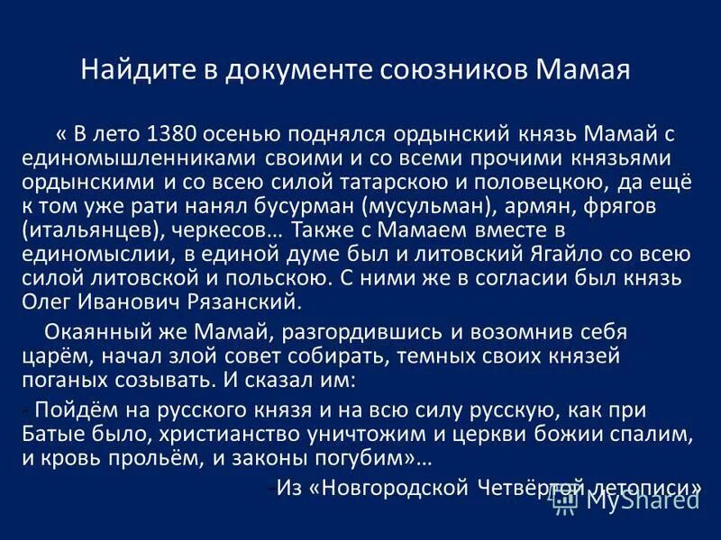 Энциклопедия о Куликовской битве 4 класс.