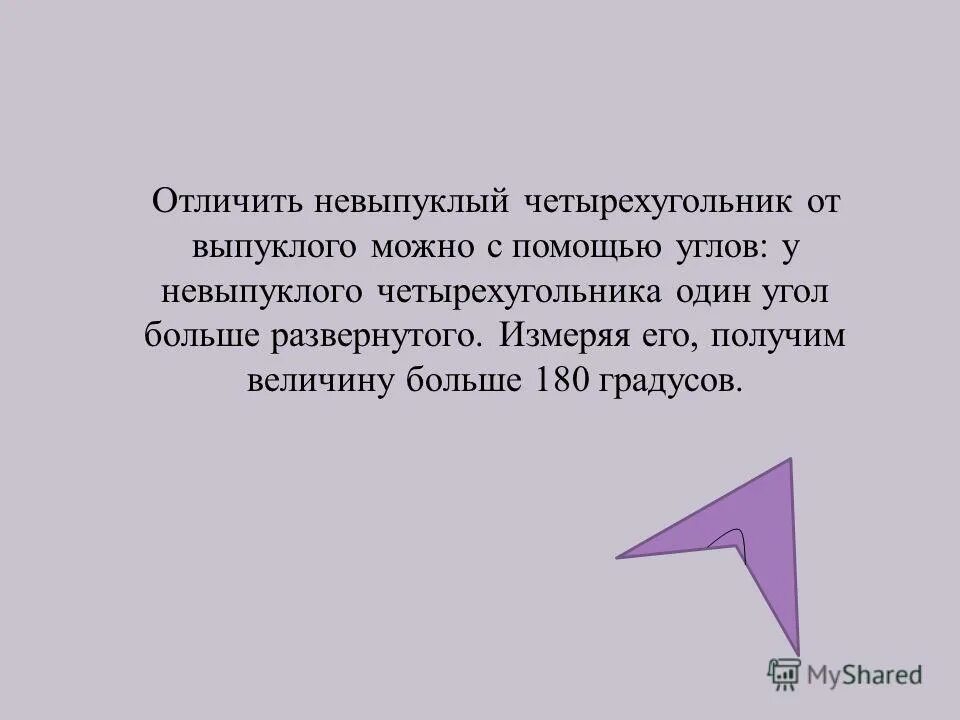 Сумма выпуклого четырехугольника равна 180 градусов