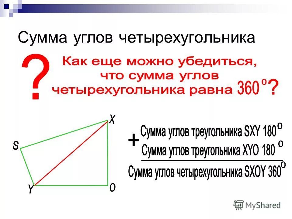 Сумма всех углов четырехугольника равна 360 теорема.