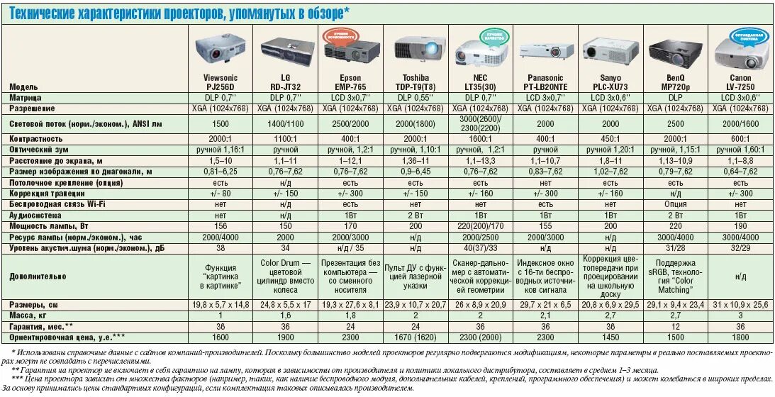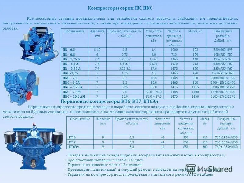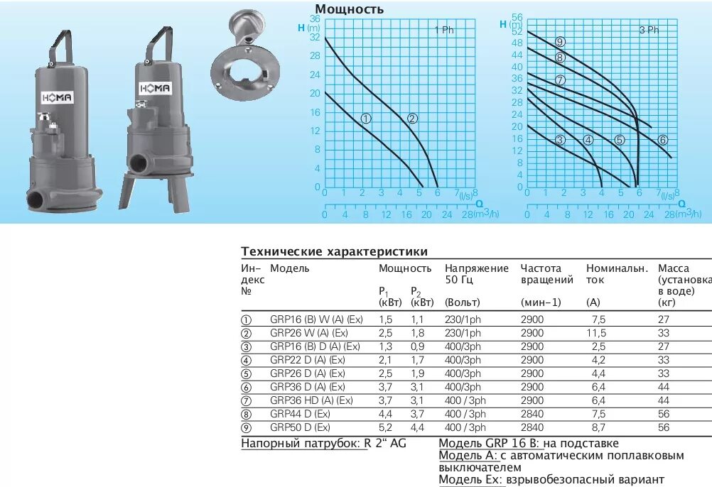 Технические характеристики насосов.