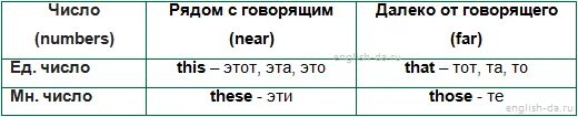 This that these those таблица.