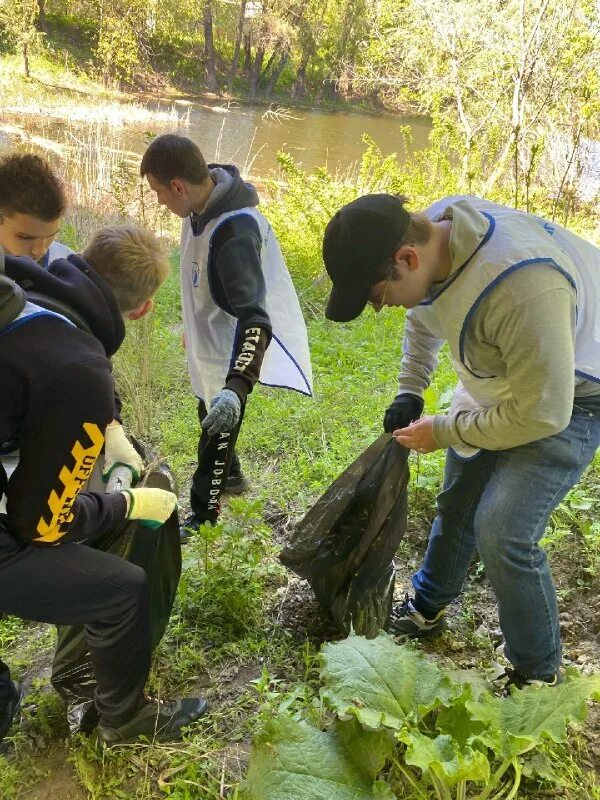 Волонтеры убирают мусор.