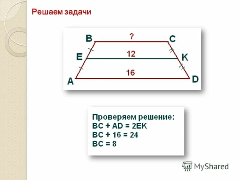 Задачи трапеция средняя линия трапеции.