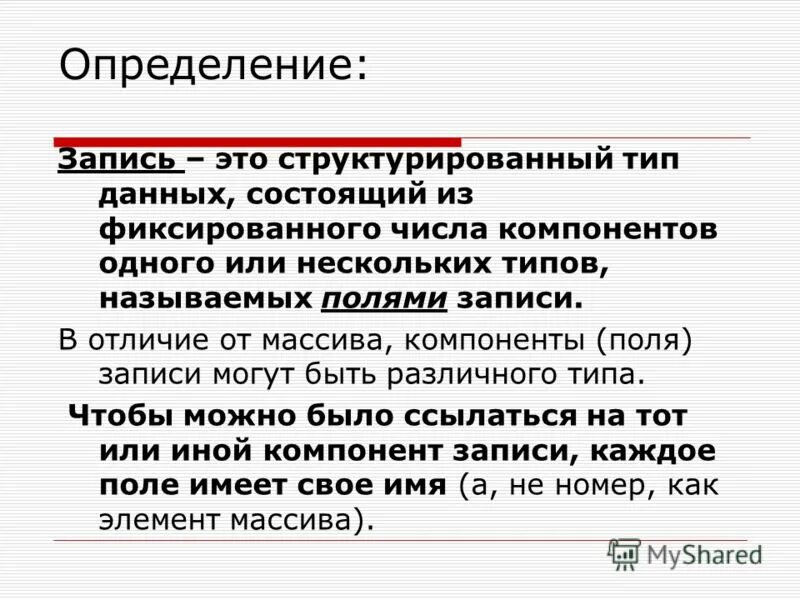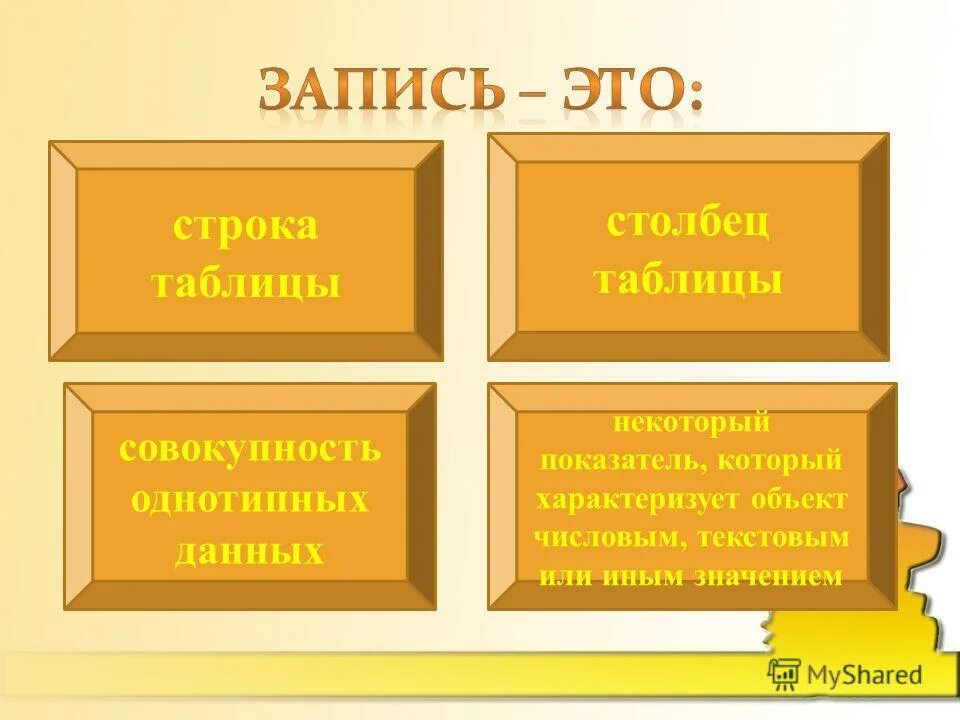 Презентация запись это строка таблицы.