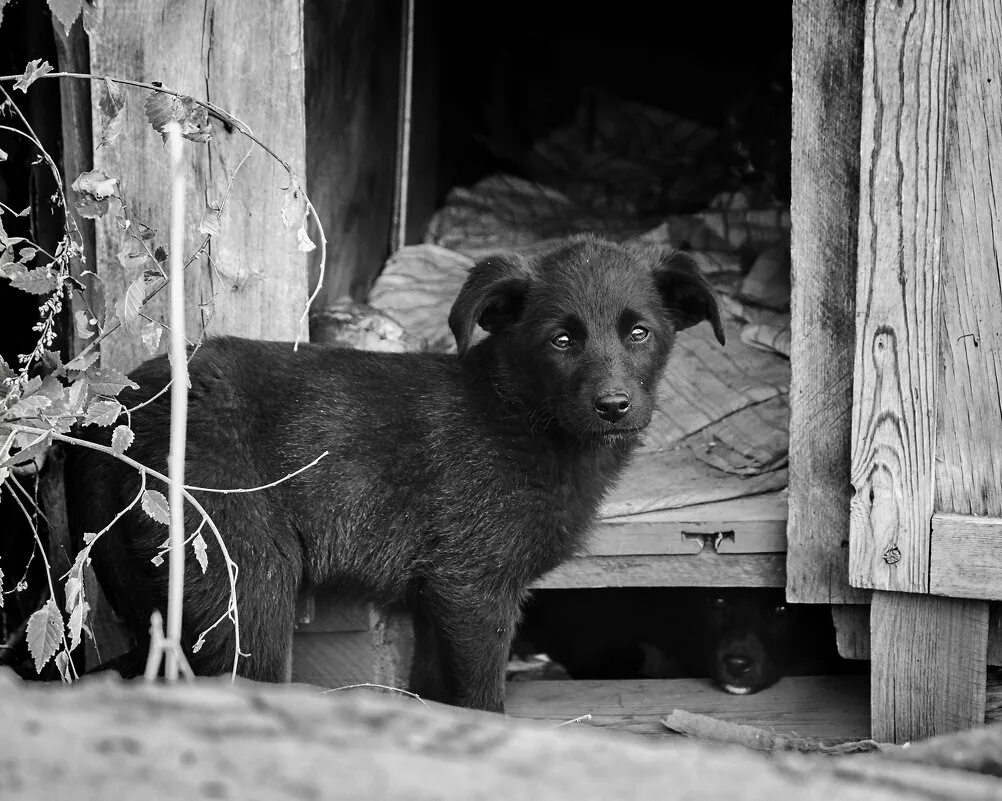 Собака дворняжка черная.